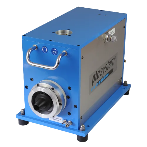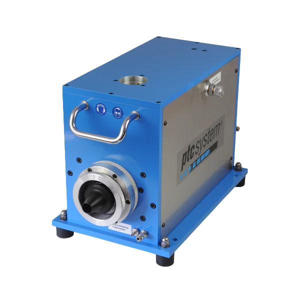 Um den Austritt des Reinigungsprojektils sicher zu stellen, können die ptcsystem® Mini-Tischgeräte optimal mit unserer Austrittskontrolle PTC-DKS-RL150 kombiniert werden.