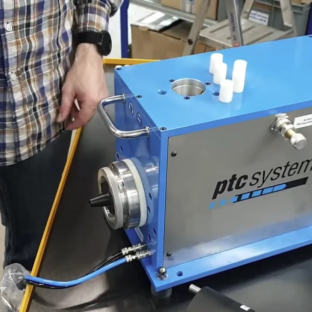 Bei der Reinigung kleiner und mittlere Serien, zum Beispiel bei der Schlauchkonfektionierung, erhöht das ptcsystem® Mini-Tischgerät die Ergonomie und beugt Ermüdung vor. Das Reinigungsprojektil wird einzeln von Hand eingelegt. Danach hat der Werker die Hände frei, um beide Schlauchenden zu handhaben. Der Reinigungsvorgang wird über einen Fußschalter ausgelöst.