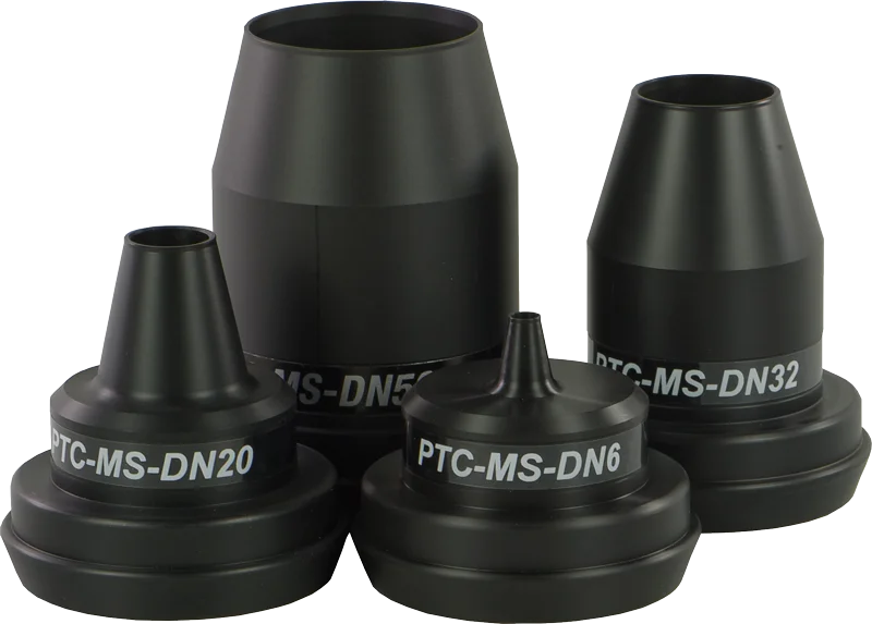 Die konischen ptcsystem® Schlauchmundstücke sind für Hydraulikschläuche von DN6 bis DN50 lieferbar.Ihre Auswahl erfolgt über die Nennweite des zu reinigenden Schlauches.