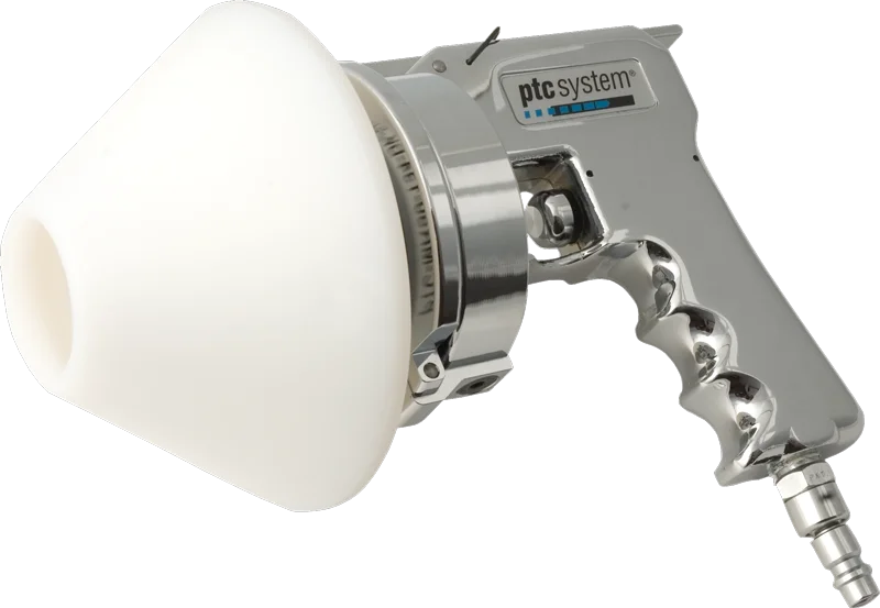 Bei Innendurchmessern größer 65,0 mm kommt der ptcsystem® Dichtkegel zum Einsatz. Dieser wird einfach auf ein Standard Rohr- oder Schlauchmundstück gesteckt. Das Reinigungsprojektil wird von Hand in das Rohr geschoben. Wir empfehlen in diesem Fall den Einsatz der FLEX Projektile.