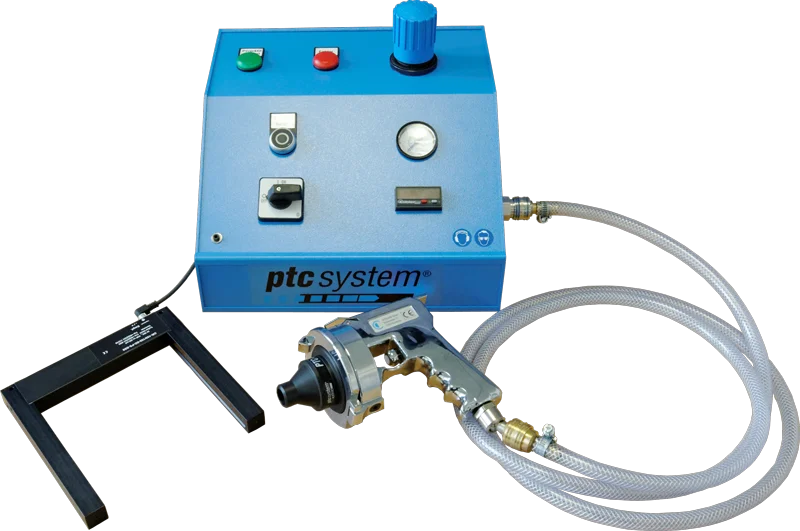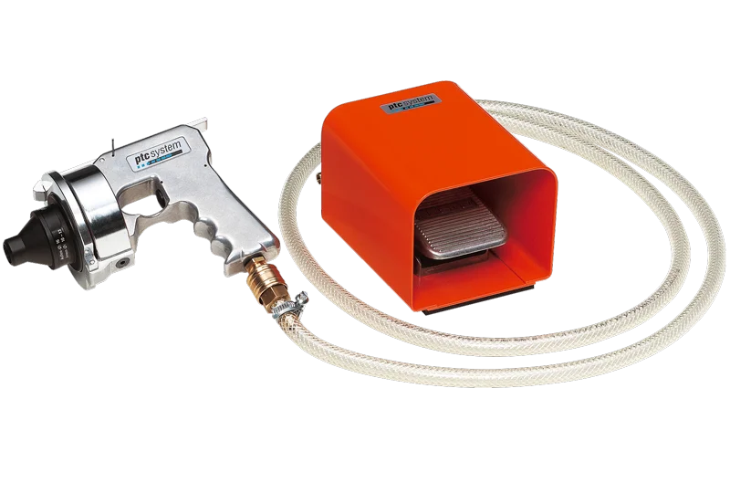 Fußschalter für die ptcsystem® Pistole. Sinnvoll, zum Beispiel, bei großen Stückzahlen.