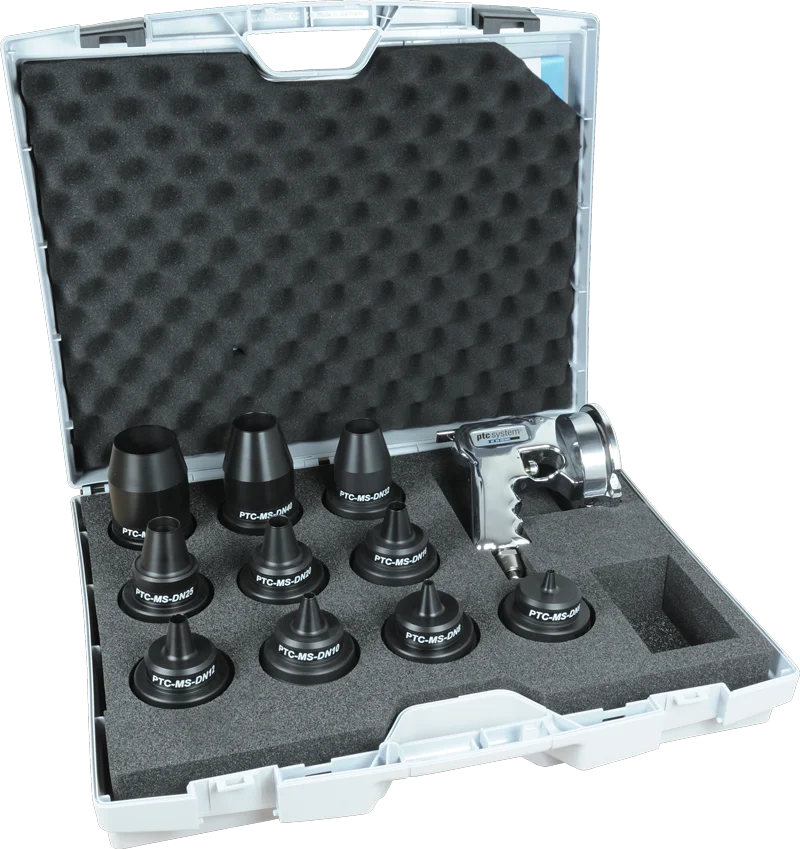 - Standard ptcsystem® Pistole aus hochfestem Aluminium mit drehbarem Druckluftanschluss für ergonomisches Handling